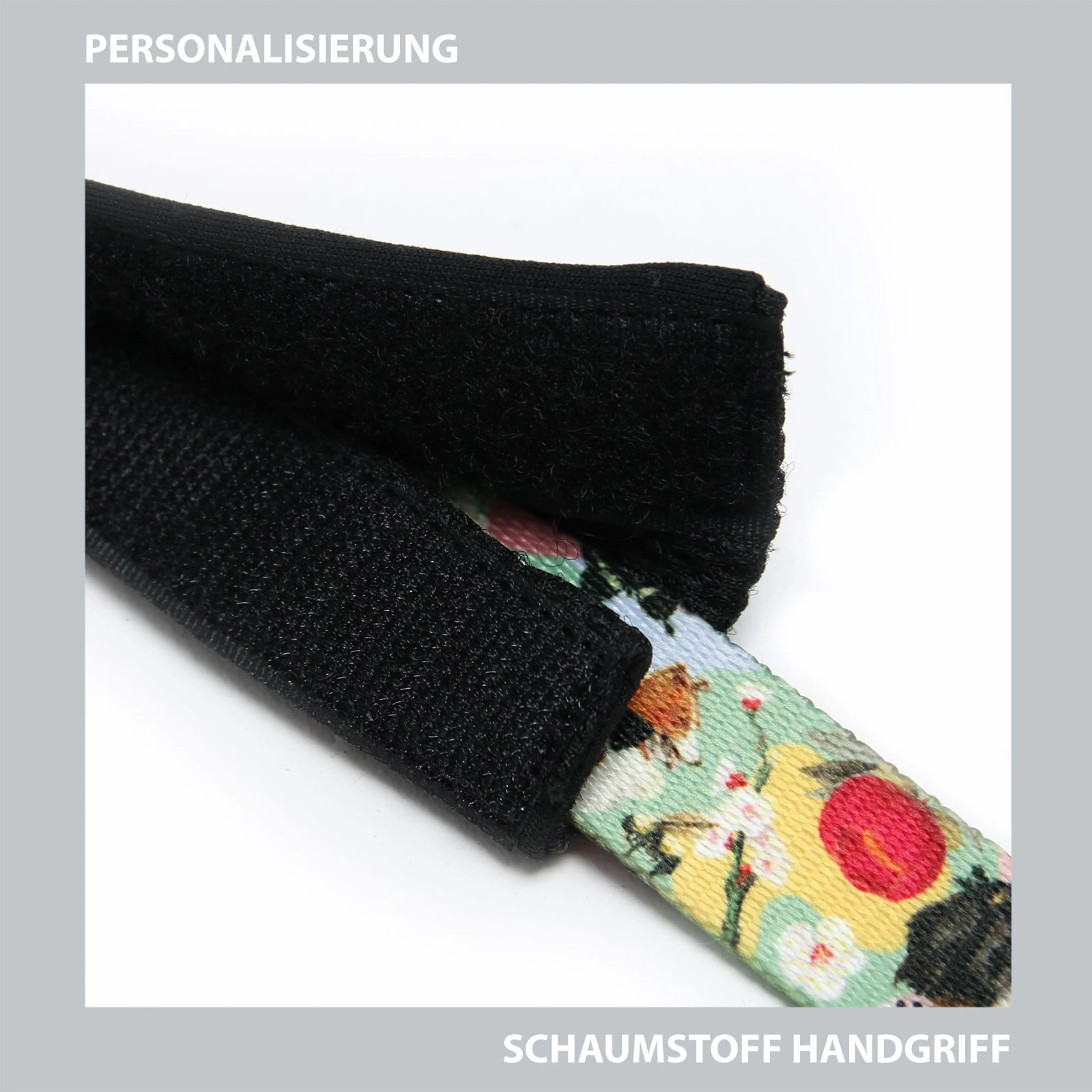2. Rączka z pianki - to dodatkowa rączka zapinana na rzep, która sprawia, iż korzystanie ze smyczy przepinanej jest jeszcze bardziej komfortowe -dodanie tej opcji również nie wydłuża czasu realizacji zamówienia.