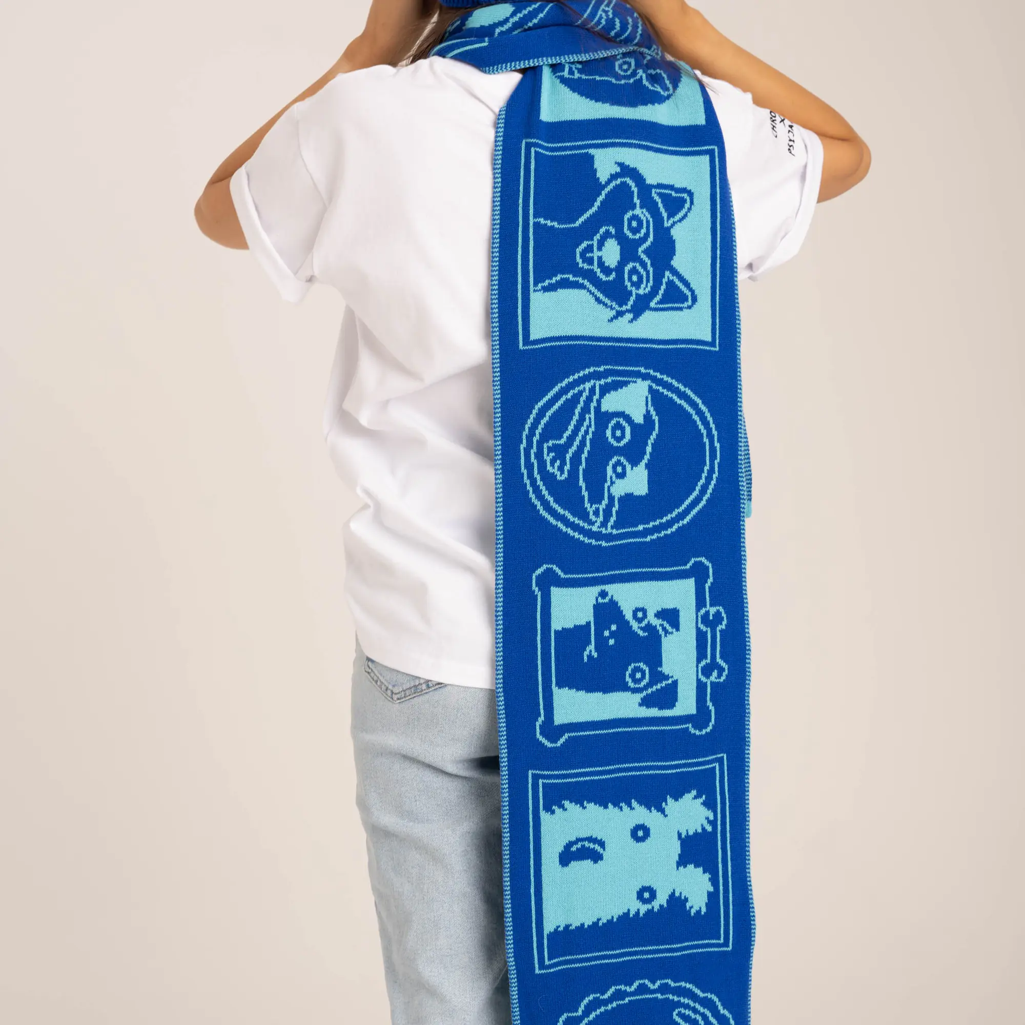 Szalik stworzony we współpracy z kultową marką Pan tu nie stał. Wydziergany w Łodzi z dzianiny akrylowej. Grafika została zaprojektowana przez super zdolną artystkę Adelę Madej. Szalik ma 200 cm długości.