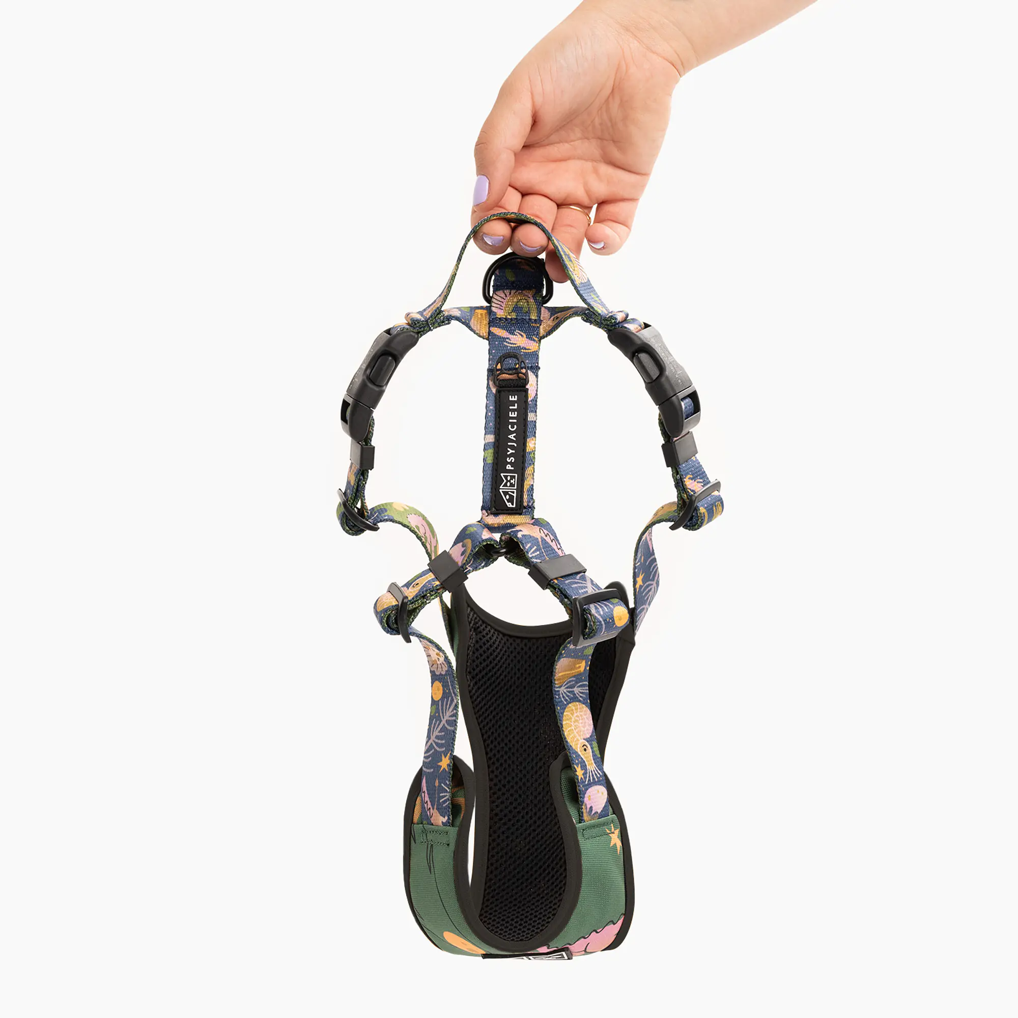 Szelki bezuciskowe Psyjaciele.com pozwalają na regulacje obwodu szyjnego i klatki piersiowej pozwalając na idealne dopasowanie do sylwetki psa.