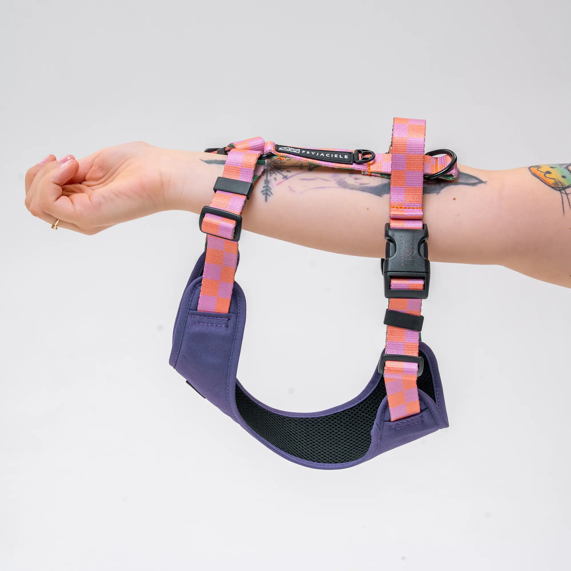 Szelki bezuciskowe Psyjaciele.com pozwalają na regulacje obwodu szyjnego i klatki piersiowej pozwalając na idealne dopasowanie do sylwetki psa.