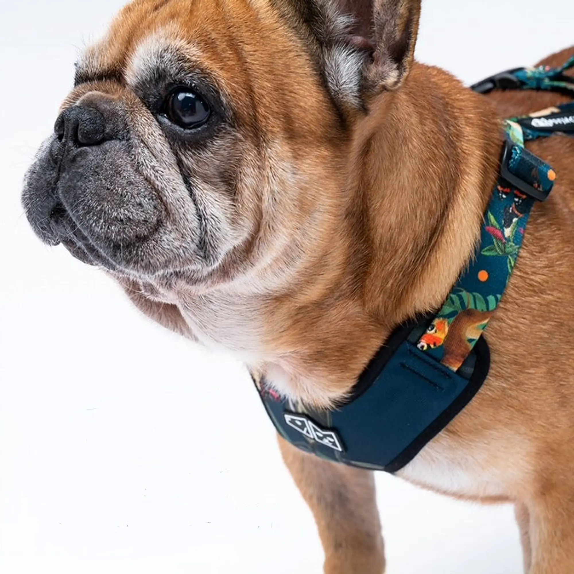 Szelki bezuciskowe Psyjaciele.com pozwalają na regulacje obwodu szyjnego i klatki piersiowej pozwalając na idealne dopasowanie do sylwetki psa.