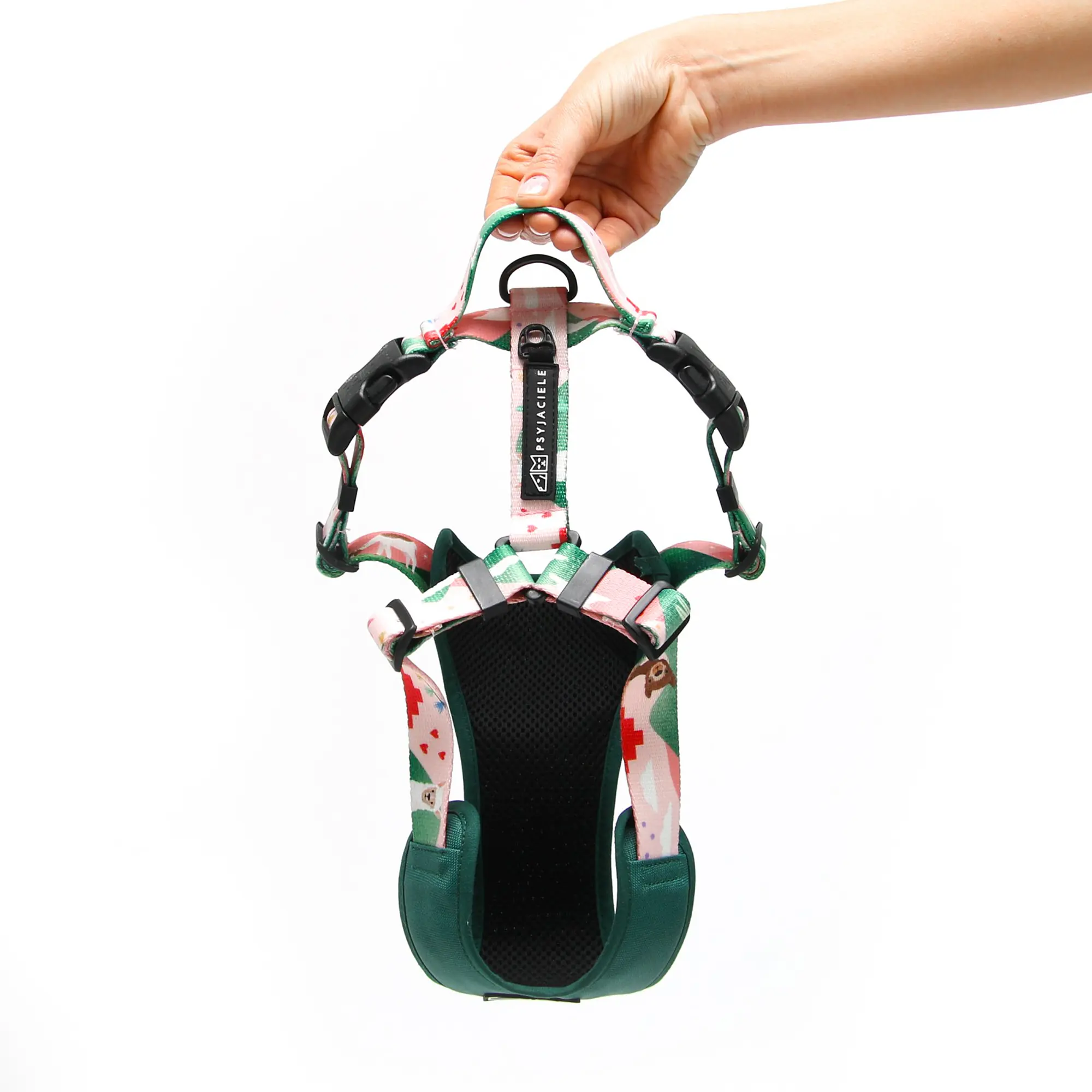 Szelki wykonane są z materiału ze wzorem, poszczególne egzemplarze mogą się od siebie różnić.