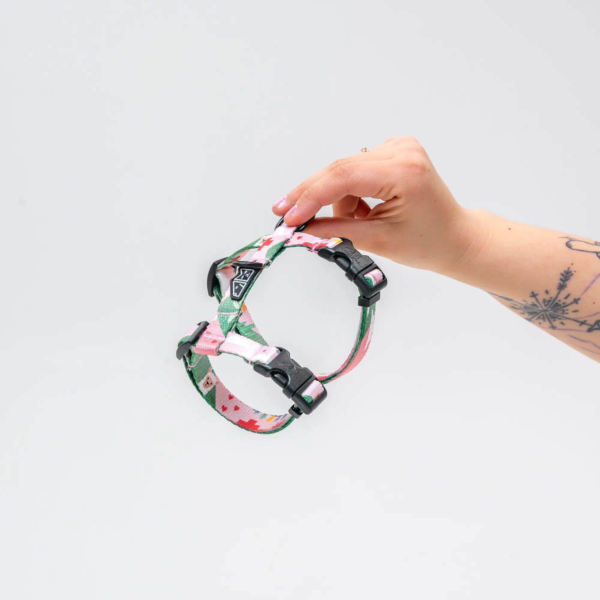 Nasze szelki zostały zaprojektowane z myślą o bezpieczeństwie i komforcie Twojego kota. Składają się z dwóch regulowanych obręczy – na szyję i na klatkę piersiową – połączonych paskiem na plecach, co zapewnia stabilne dopasowanie bez krępowania ruchów. Dzięki szerokiemu zakresowi regulacji pasują na większość kotów – od kociąt po dorosłe osobniki.