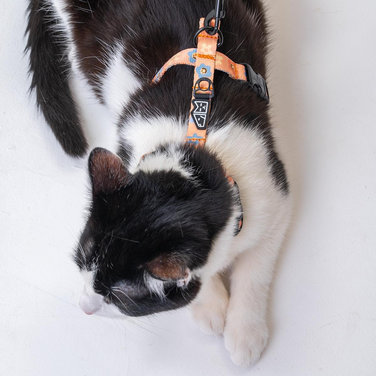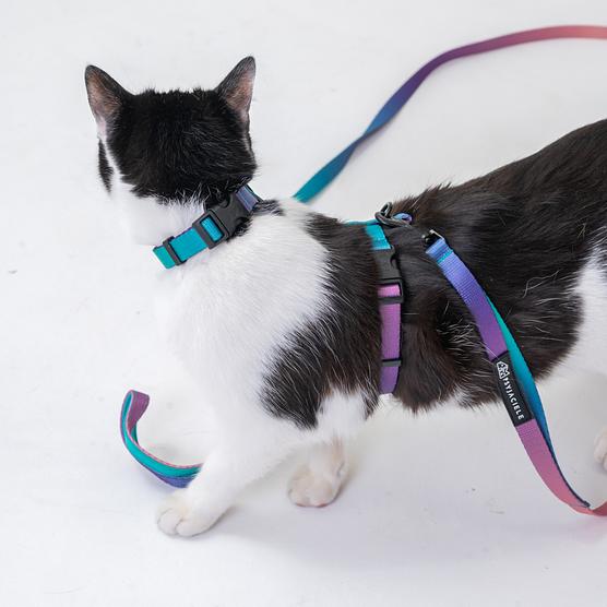 Nasze szelki zostały zaprojektowane z myślą o bezpieczeństwie i komforcie Twojego kota. Składają się z dwóch regulowanych obręczy – na szyję i na klatkę piersiową – połączonych paskiem na plecach, co zapewnia stabilne dopasowanie bez krępowania ruchów. Dzięki szerokiemu zakresowi regulacji pasują na większość kotów – od kociąt po dorosłe osobniki.