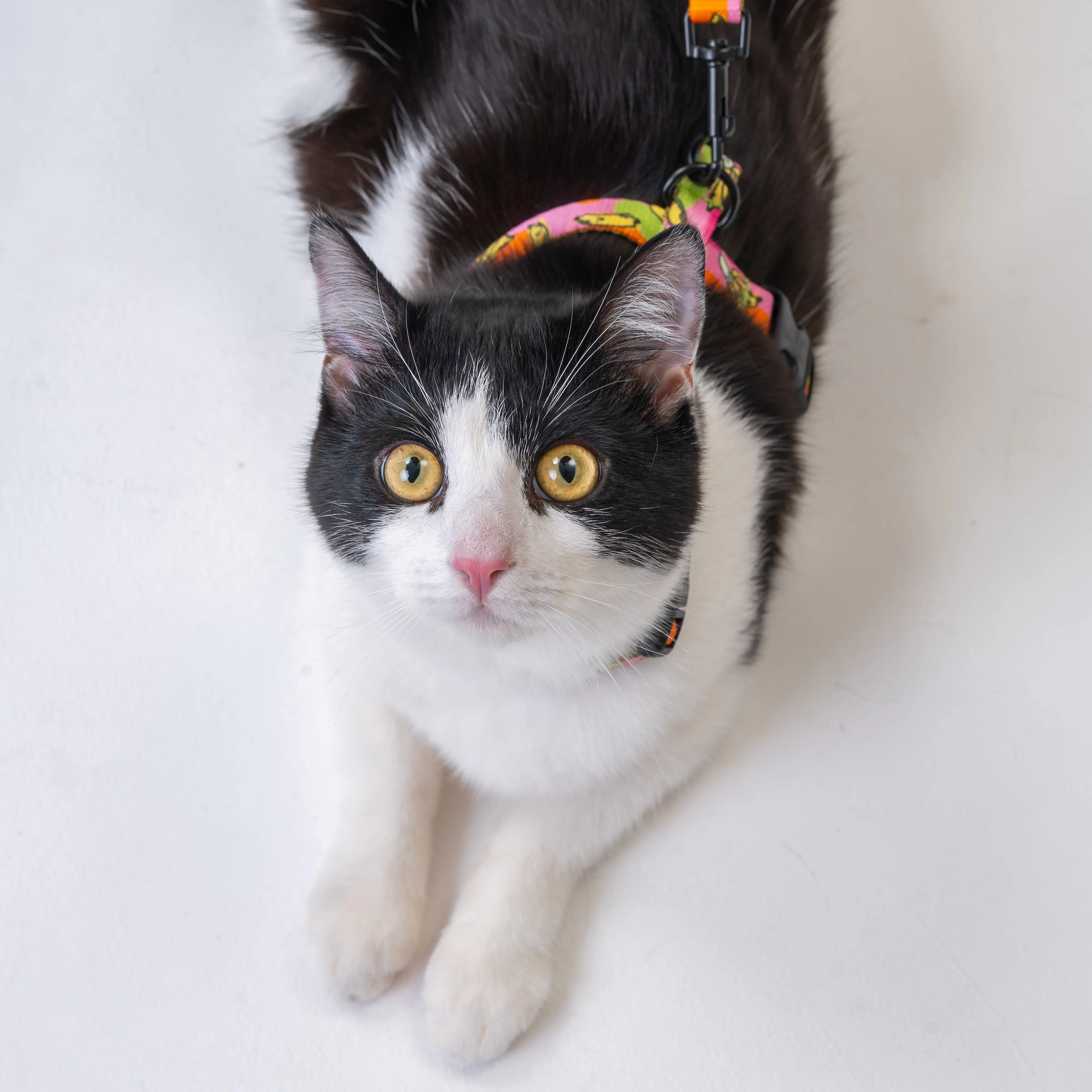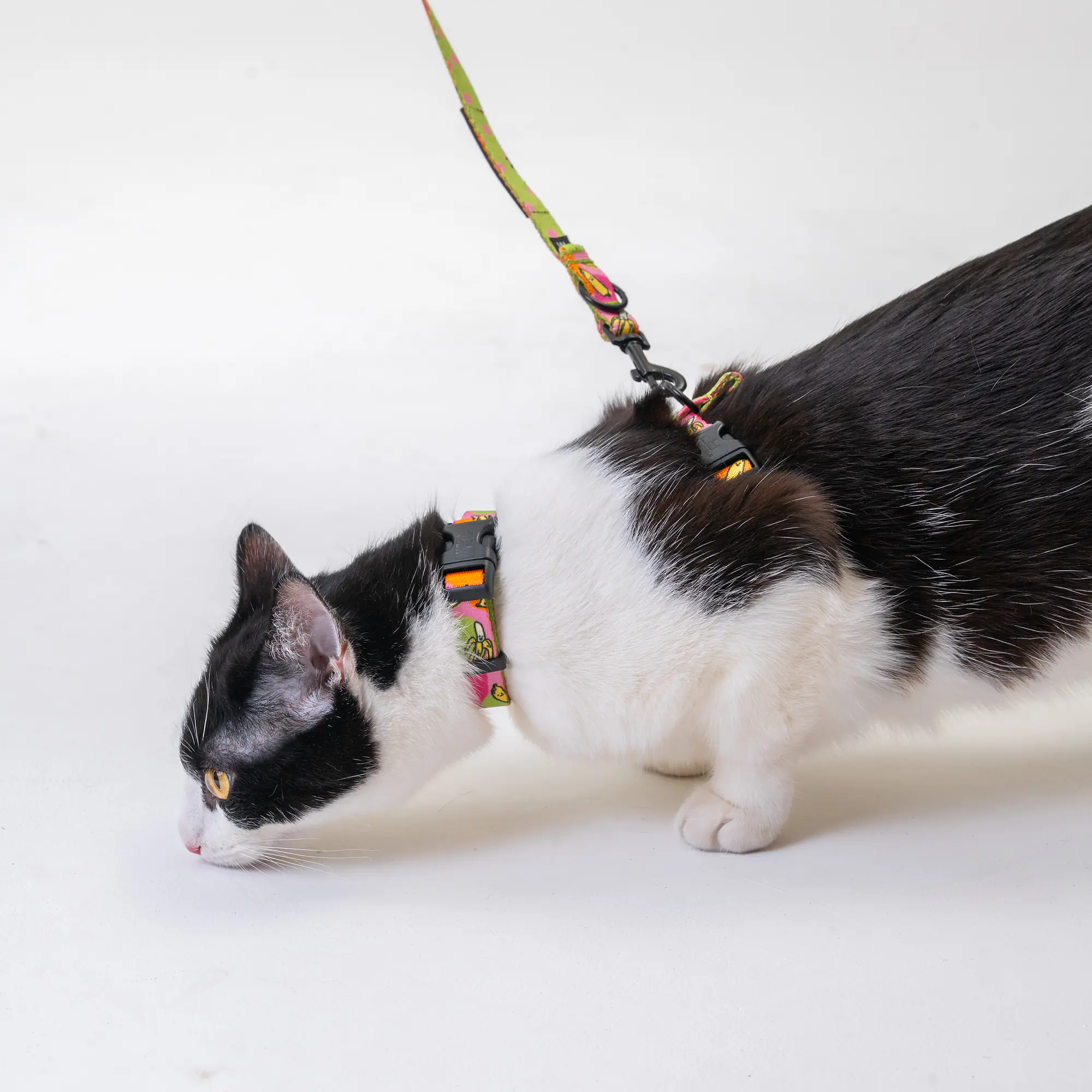 Nasze szelki zostały zaprojektowane z myślą o bezpieczeństwie i komforcie Twojego kota. Składają się z dwóch regulowanych obręczy – na szyję i na klatkę piersiową – połączonych paskiem na plecach, co zapewnia stabilne dopasowanie bez krępowania ruchów. Dzięki szerokiemu zakresowi regulacji pasują na większość kotów – od kociąt po dorosłe osobniki.