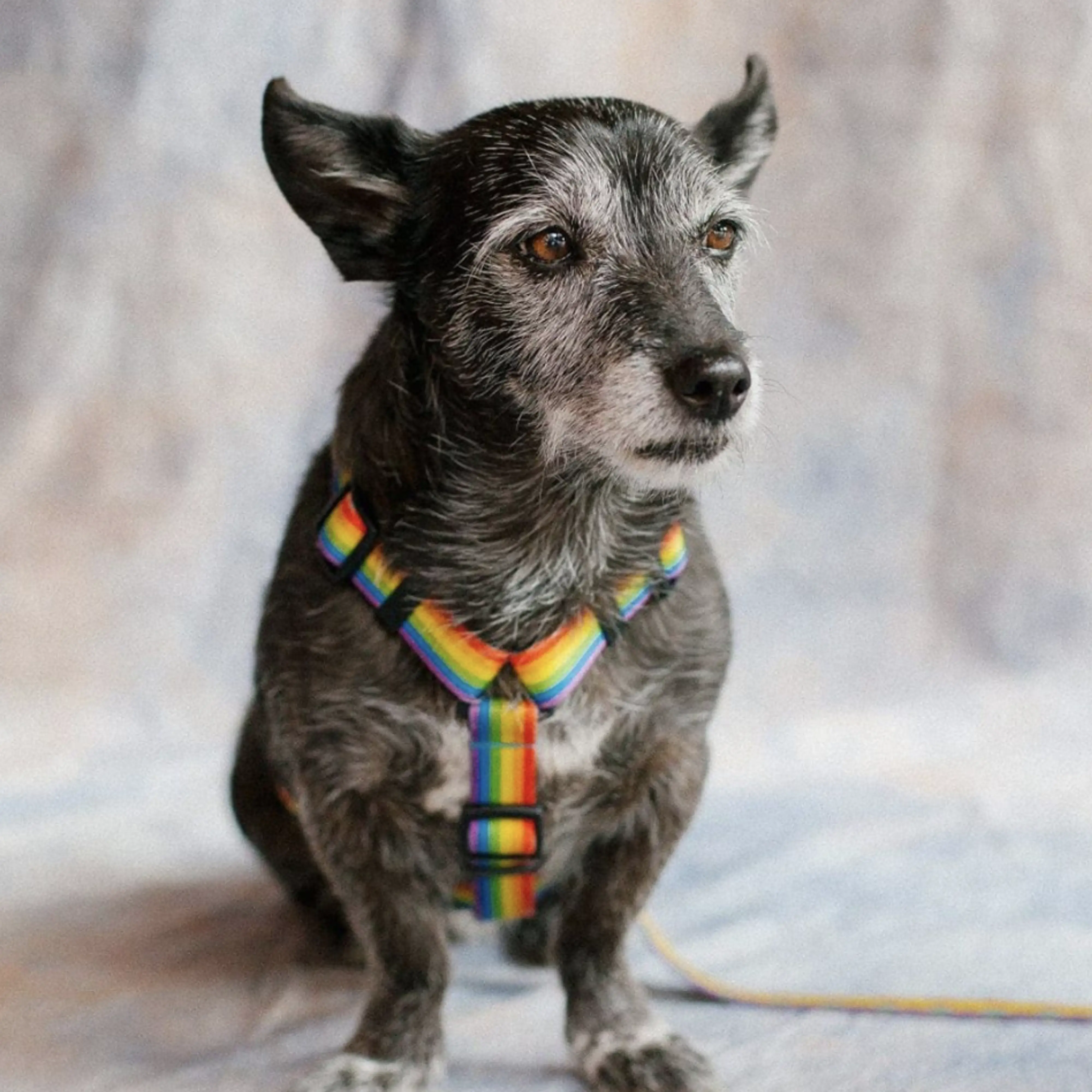 Wzór Miłość, równość, gryzaki - zwany przez nas wewnętrznie również "Psy nie widzą tylu kolorów:)" to piękny design połączony z pięknymi przekonaniami. Jest to tęcza miłości, którą okazują psy wszystkim swoim właścicielom każdego dnia. Cudowne połączenie kolorów przepięknie skomponuje się z sierścią Twojego psiaka! Ubierz swojego psiaka w designerski wzór, a każdy spacer będzie super psyjemny. Do szelek możesz dopasować smycz zwykła lub przepinaną oraz etui na kupoworki.