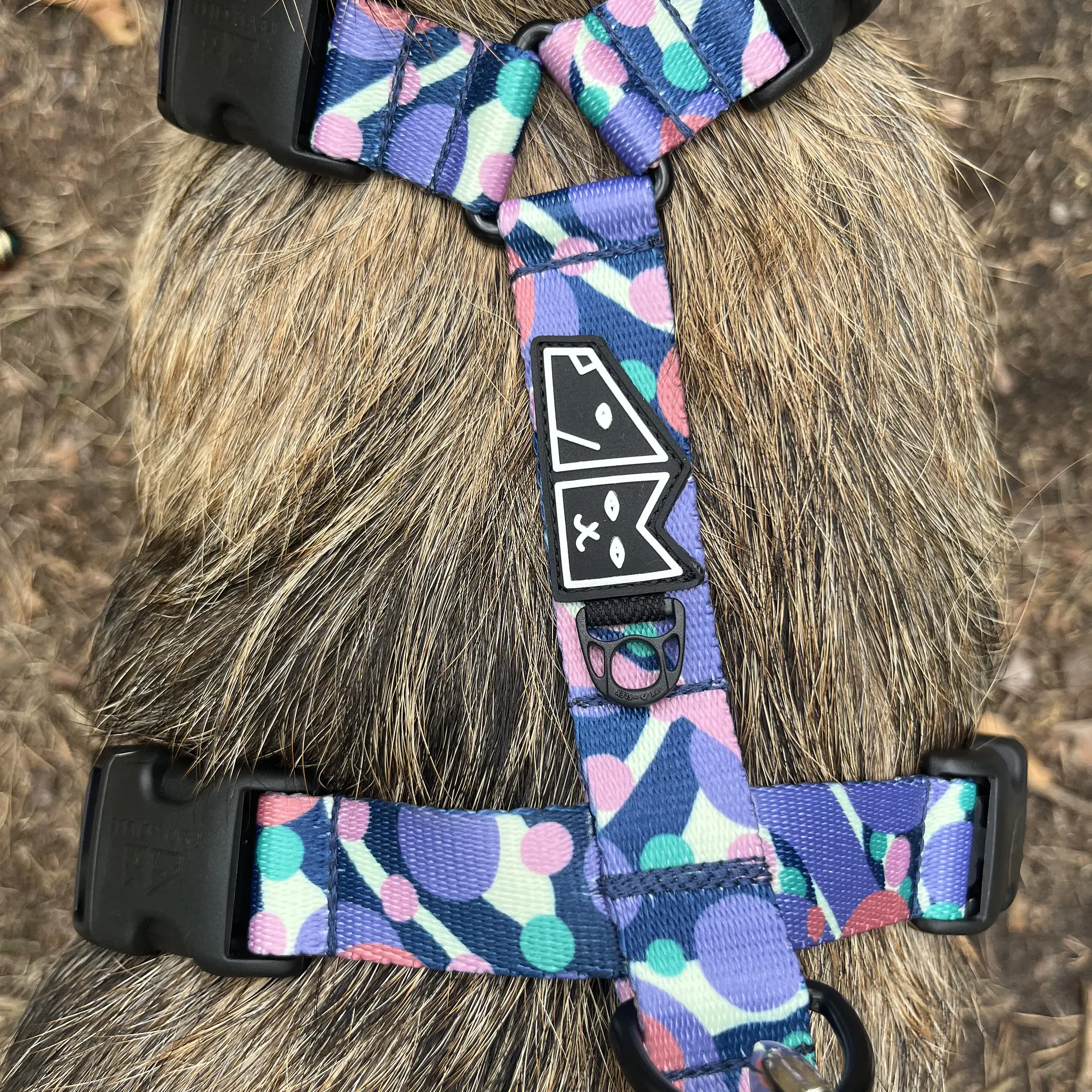 Najważniejsze cechy produktu: Kolorowa, dwustronna, bardzo wytrzymała taśma o szerokości 25 i 20mm; Mocne, odporne na warunki atmosferyczne okucia i klamra marki Duraflex; Specjalny zaczep na adresówkę czy numerek; Ręcznie wykonana w Polsce; Konstrukcja chroniąca kręgosłup psa i uniemożliwiająca ucieczkę; Regulacja w aż 4 miejscach; Unikalny wzór dostępny tylko na Psyjaciele.com, zastosowanie podwójnego materiału, raczka w standardzie|