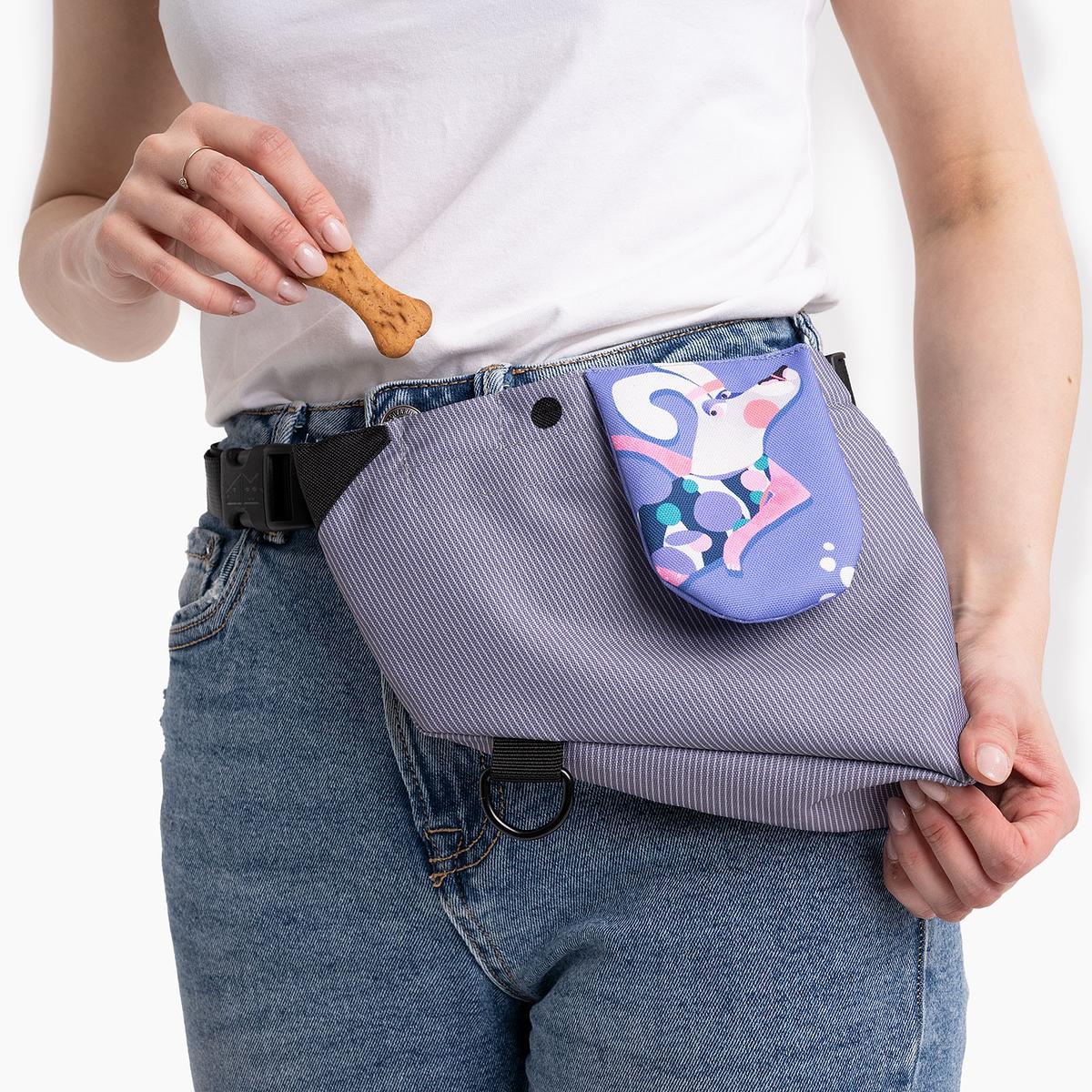 Our snack training bag is not only unique in appearance but also highly functional. The perfect complement to any walking set, it will work well thanks to the two types of material used. On the outside of the sachet there is a waterproof material with a pattern, while inside there is a Velcro insert made of rubberized… more ↗