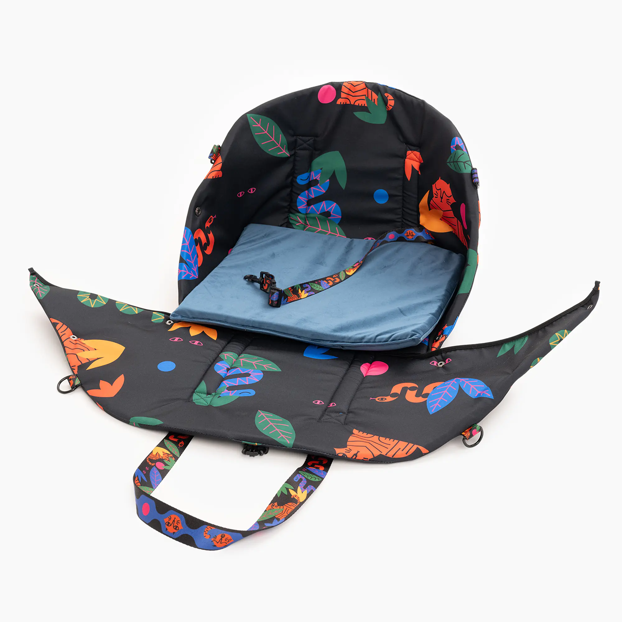 Po odpięciu zaczepów torba rozkłada się na przenośne legowisko, które dzięki miękkiej welurowej poduszce w środku jest bardzo komfortowe dla Twojego pupila! Posiada też otwór, przez który można przeciągnąć pas samochodowy, w przypadku wykorzystania w aucie.