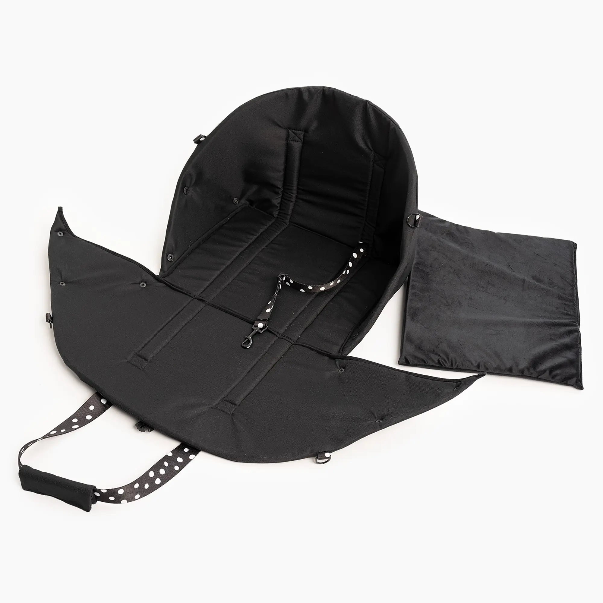 Po odpięciu zaczepów torba rozkłada się na przenośne legowisko, które dzięki miękkiej welurowej poduszce w środku jest bardzo komfortowe dla Twojego pupila! Posiada też otwór, przez który można przeciągnąć pas samochodowy, w przypadku wykorzystania w aucie.