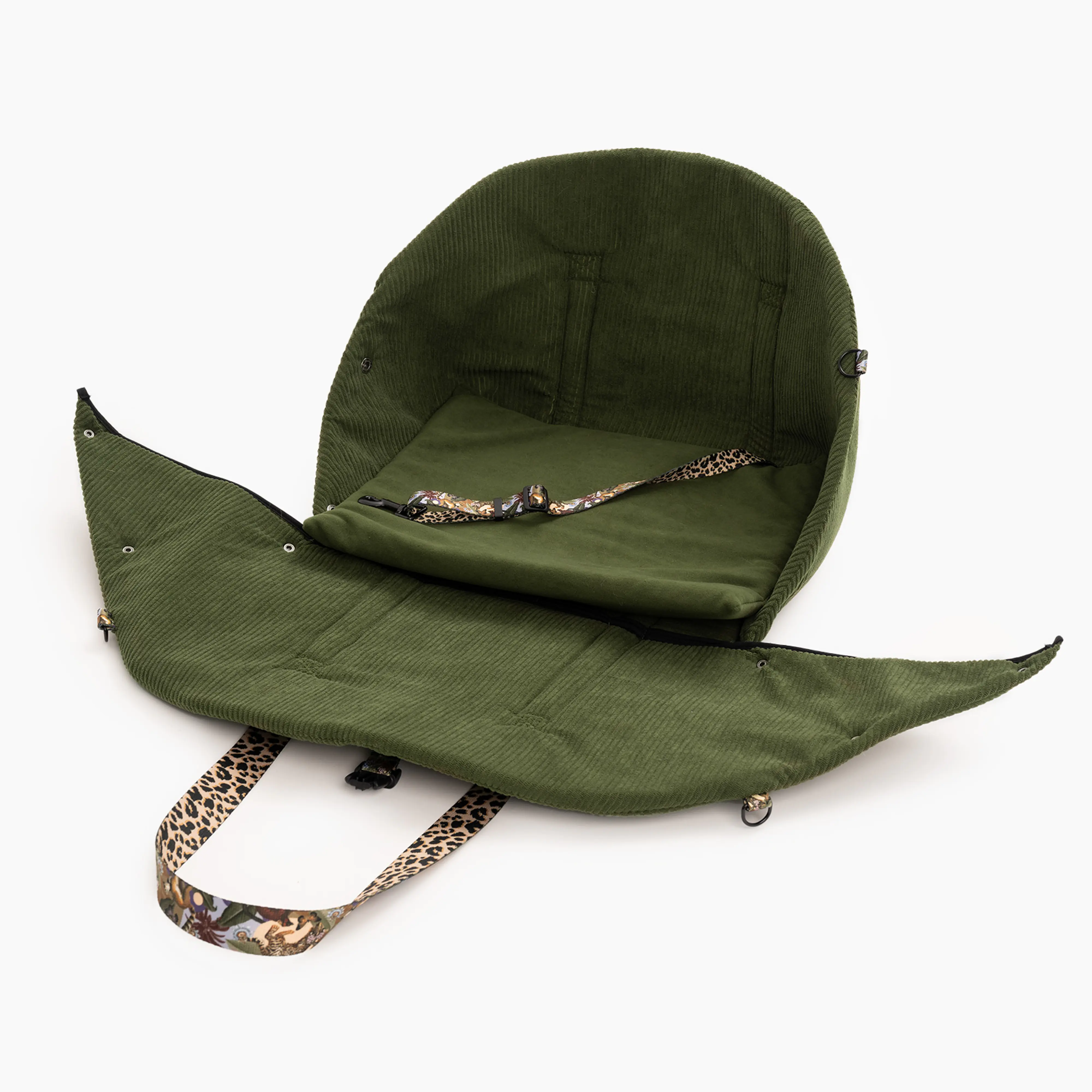 Po odpięciu zaczepów torba rozkłada się na przenośne legowisko, które dzięki miękkiej welurowej poduszce w środku jest bardzo komfortowe dla Twojego pupila! Posiada też otwór, przez który można przeciągnąć pas samochodowy, w przypadku wykorzystania w aucie.