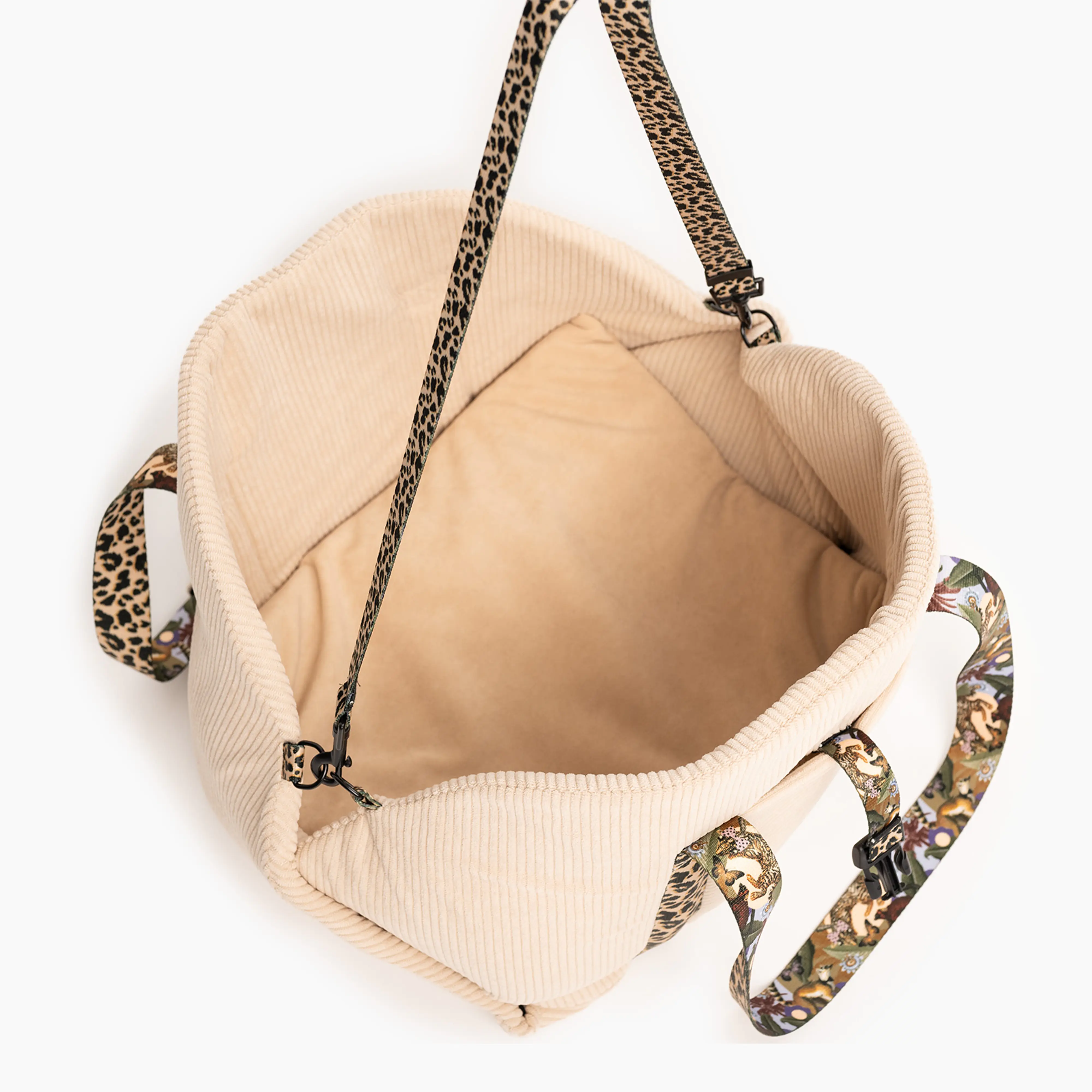 Idealna na wszelkie wyjazdy jako transporter lub przenośne legowisko dla twojego pupila, spełnia też funkcję fotelika samochodowego. Świetnie sprawdzi się jako transporter do weterynarza, w parku, nad wodą, w samochodzie czy podczas wizyt w restauracji. Torba 3w1 to wysokiej jakości wykonanie połączone z designerskim wzorem i najwyższym komfortem dla Twojego pupila. Klasyczny, elegancki wzór świetnie sprawdzi się w każdej sytuacji.