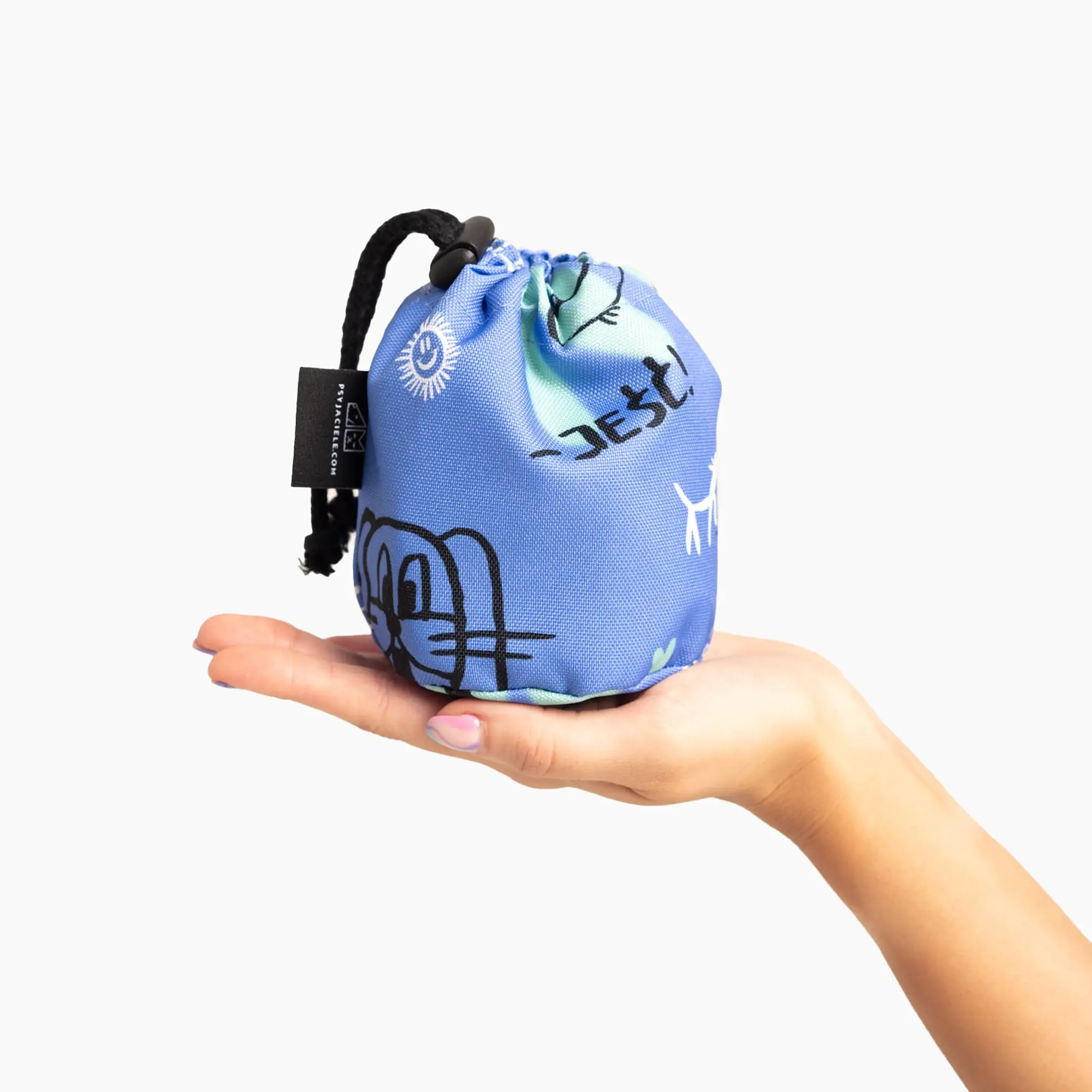 Najważniejsze cechy produktu: Wysokiej jakości, wodoodporny materiał; wkład odporny na tłuszcz, Oryginalny wzór, dostępny jedynie na Psyjaciele.com; Możliwość prania; 2 rodzaje mocowania; zamknięcie na sznurek ze stoperem, duża pojemność.