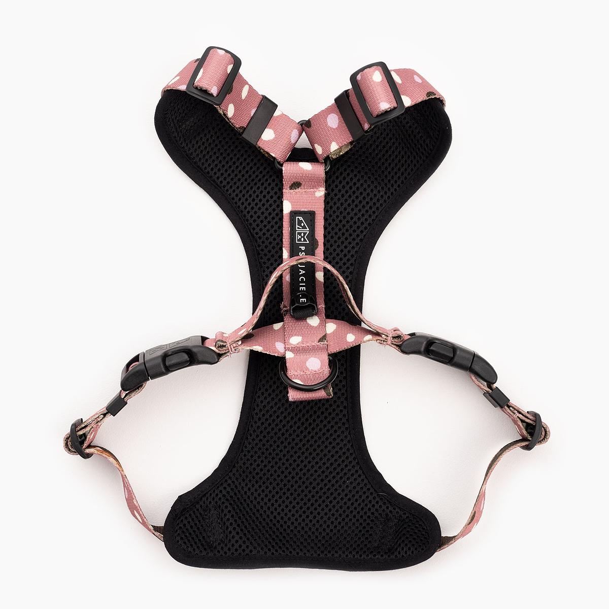 Szelki wykonane są z materiału ze wzorem, poszczególne egzemplarze mogą się od siebie różnić.