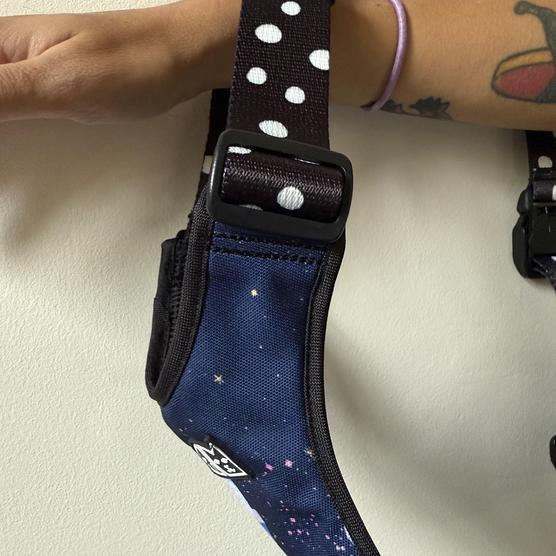 Szelki wykonane są z materiału ze wzorem, poszczególne egzemplarze mogą się od siebie różnić.