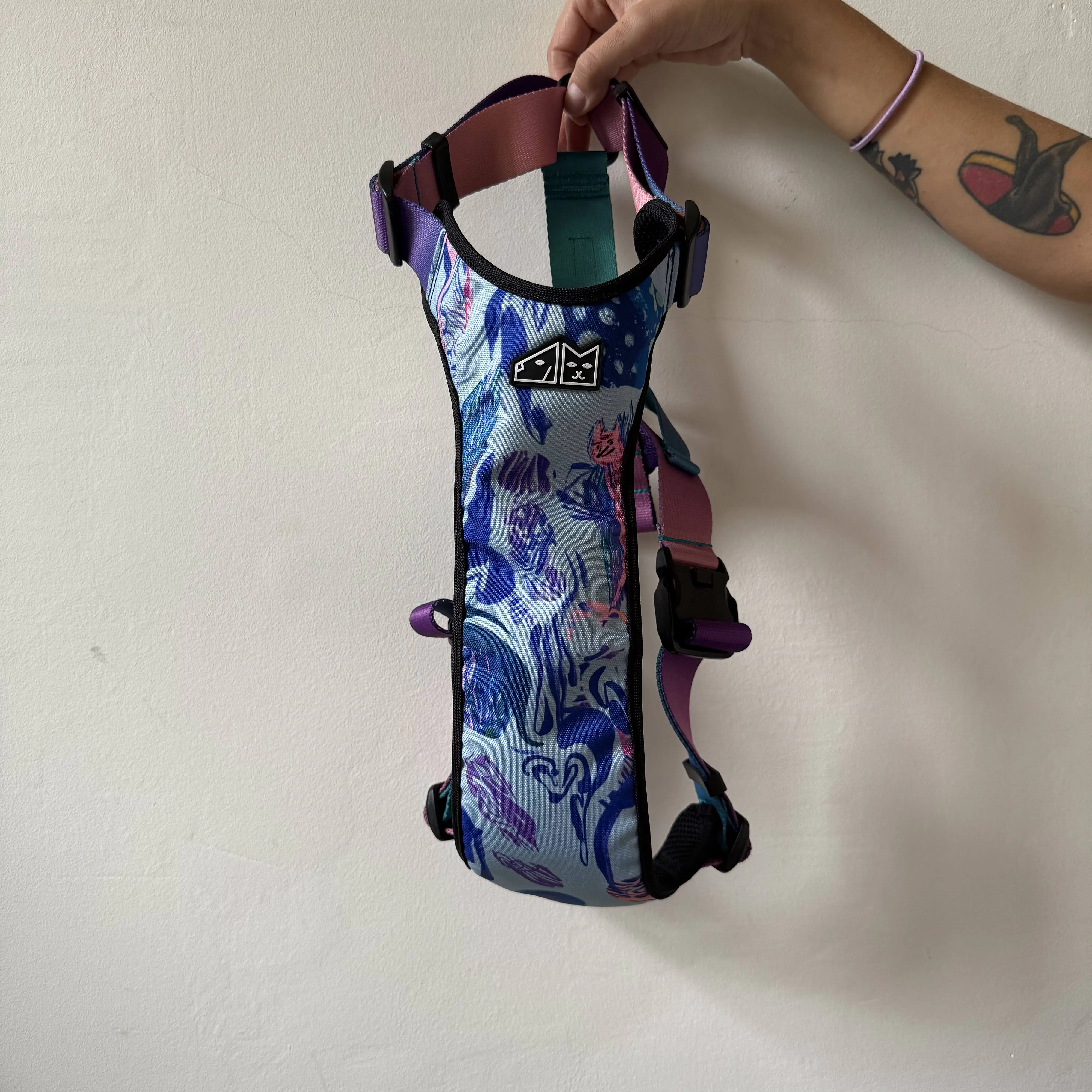WYPRZEDAŻ Szelki bezuciskowe dla psa lub kota "Psychofanka" + "Ombre turkus"