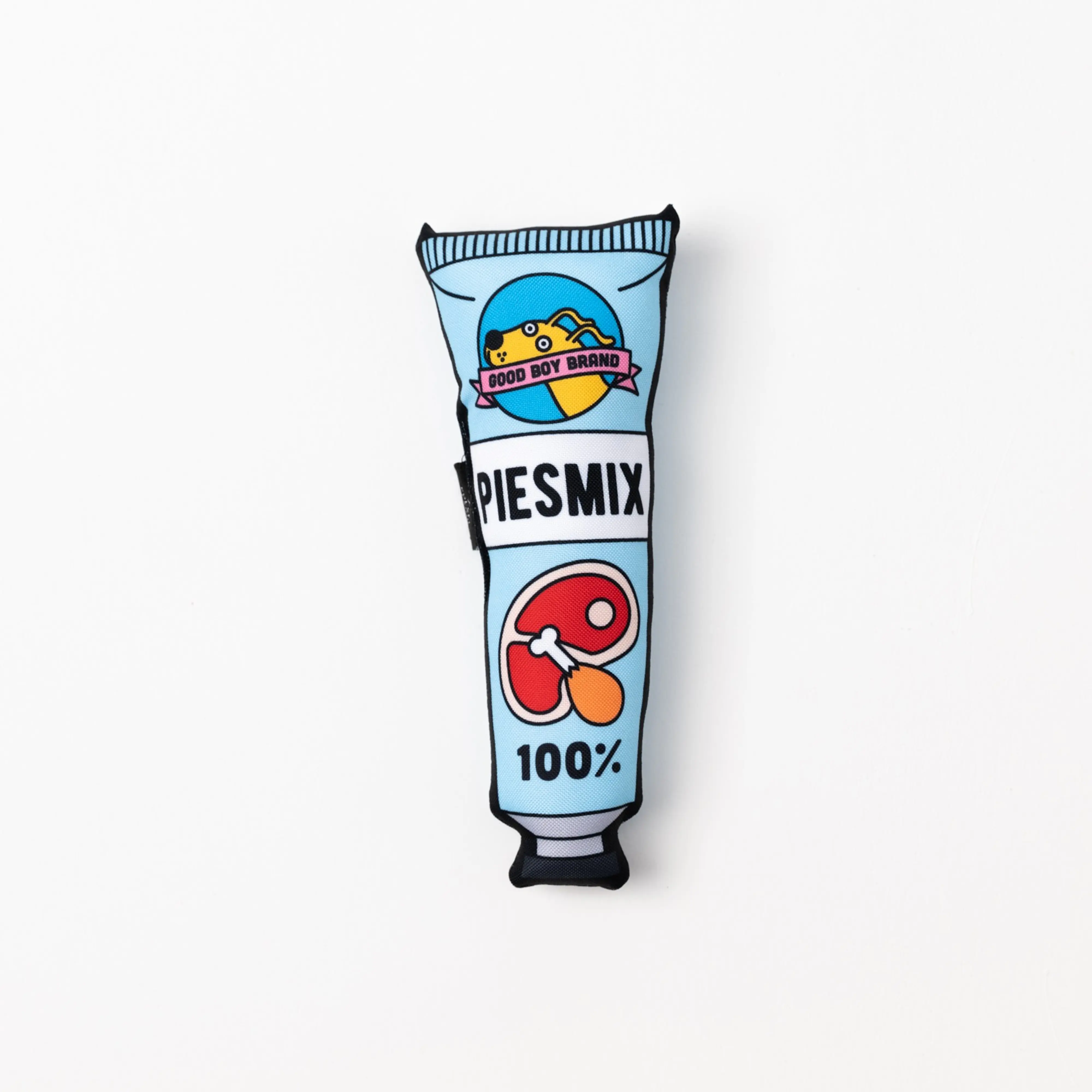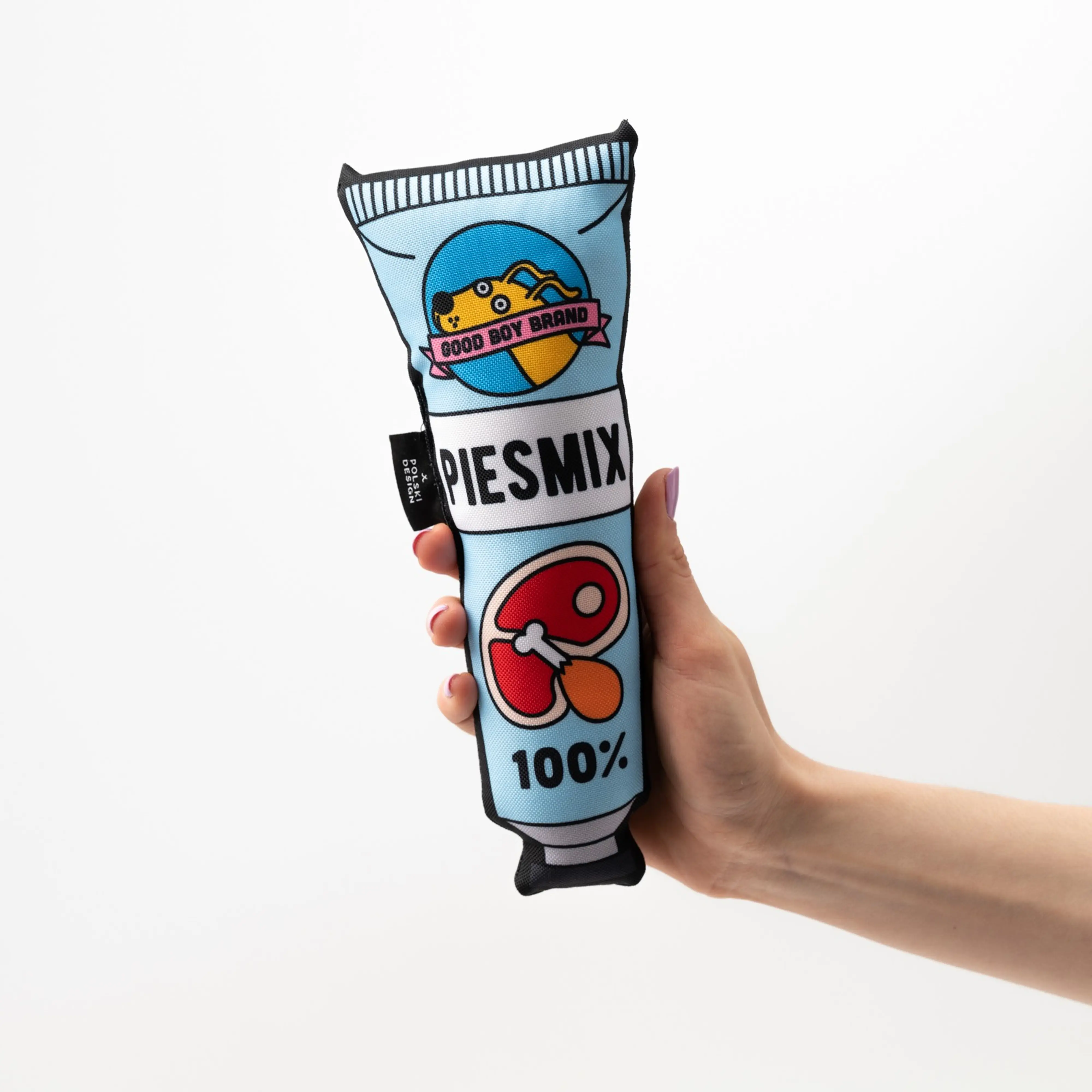 Nasza zabawka w kształcie zabawnej pasty sprawi radość każdemu psiakowi. Zabawka uszyta jest z mocnego, wodoodpornego materiału; w środku wypełniona została miękką owatą. Ciekawy wzór zaprojektowany przez wspaniałą ilustratorkę Adelę Madej sprawi, że każdy pupil będzie zadowolony z takiego prezentu