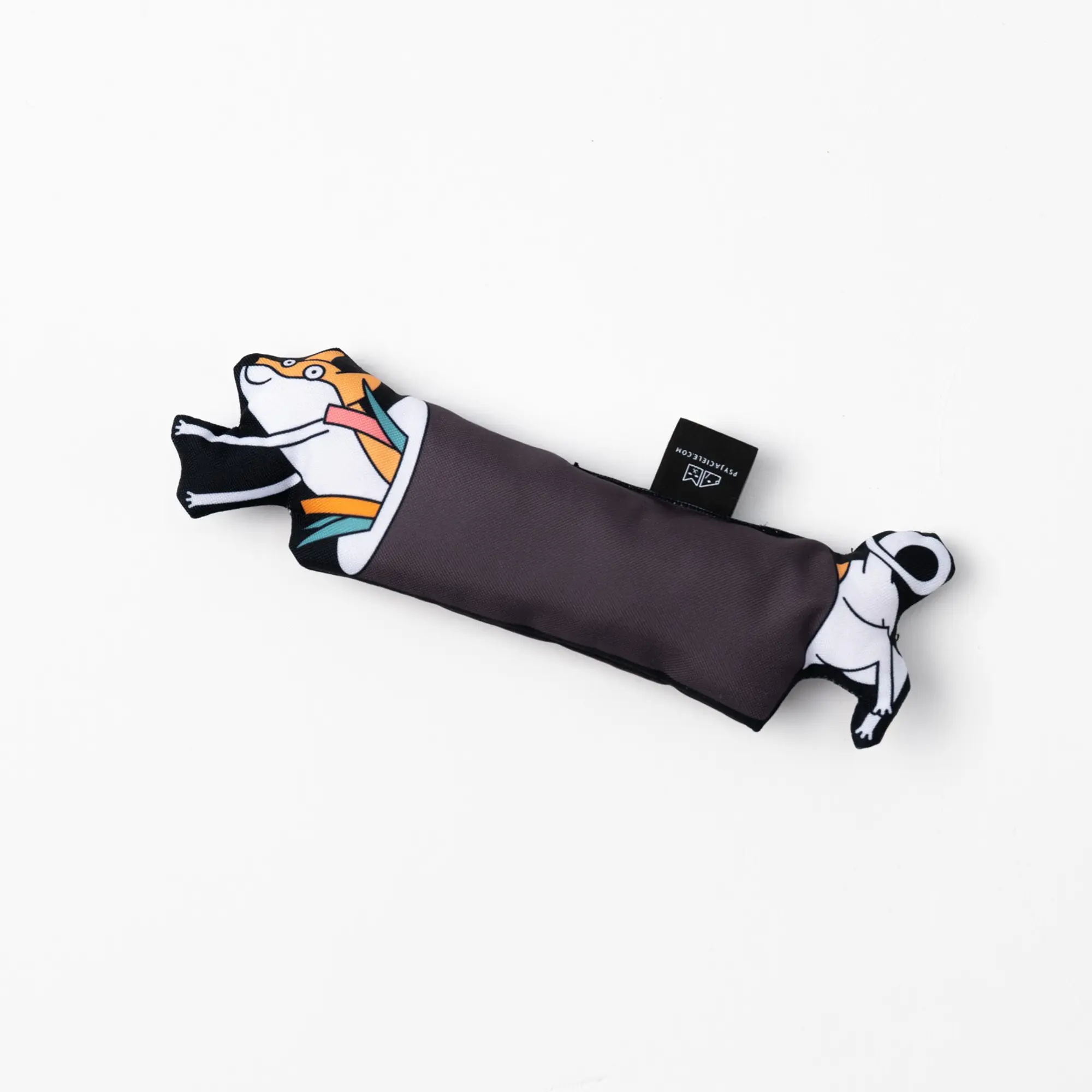 Nasza zabawka w kształcie zabawnej rolki sushi sprawi radość każdemu psiakowi. Zabawka uszyta jest z mocnego, wodoodpornego materiału; w środku wypełniona została miękką owatą. Ciekawy wzór zaprojektowany przez wspaniałą ilustratorkę Adelę Madej sprawi, że każdy pupil będzie zadowolony z takiego prezentu