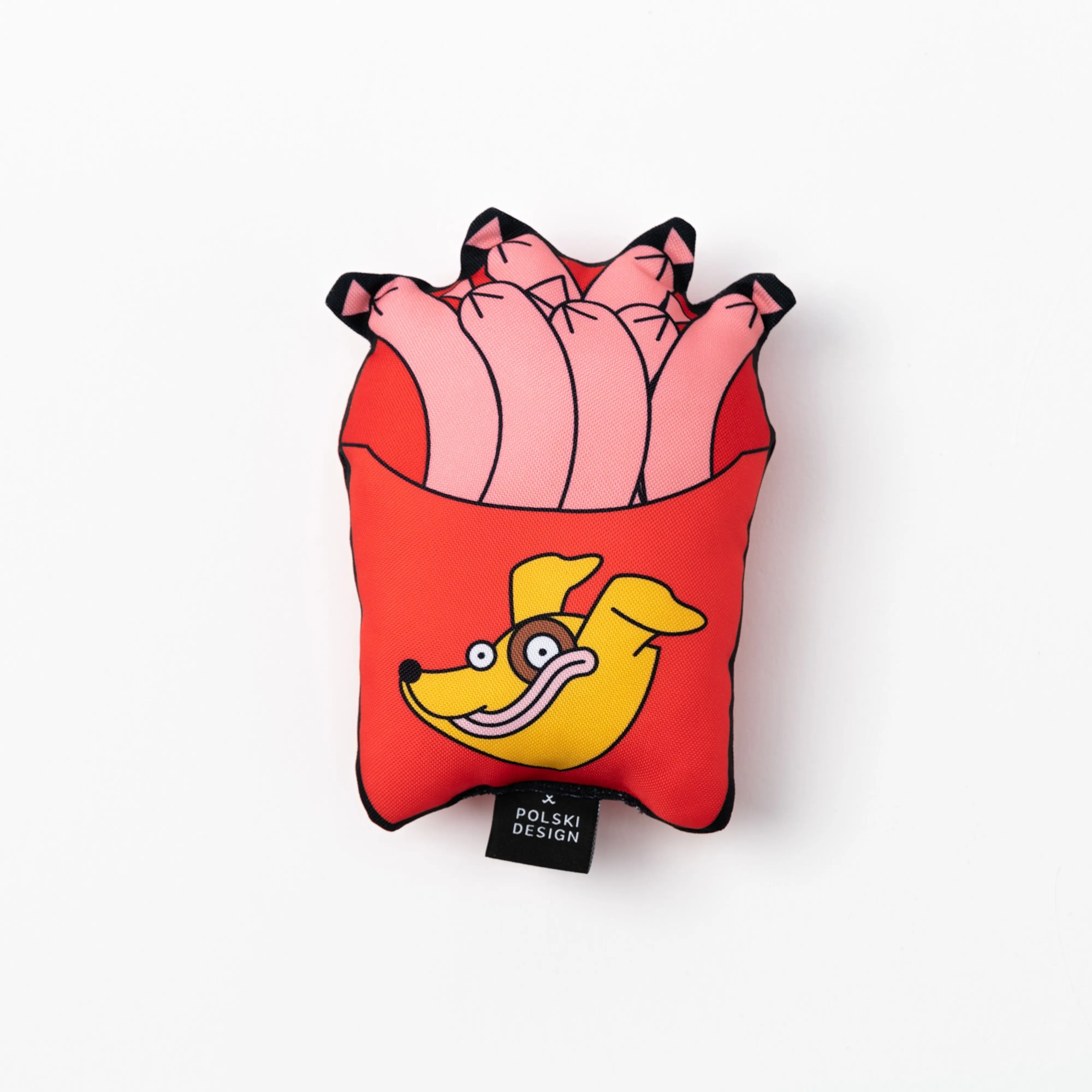 Nasza zabawka w kształcie zabawnych frytek kiełbaskowych sprawi radość każdemu psiakowi. Zabawka uszyta jest z mocnego, wodoodpornego materiału; w środku wypełniona została miękką owatą. Ciekawy wzór zaprojektowany przez wspaniałą ilustratorkę Adelę Madej sprawi, że każdy pupil będzie zadowolony z takiego prezentu