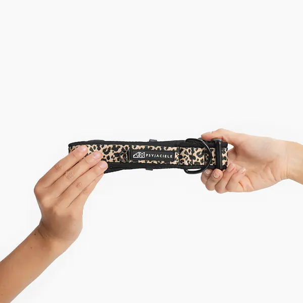 Obroża z klamrą SUPER SOFT "Pan tera mi kupi" PANTERKĄ DO GÓRY